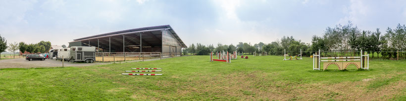 Unser Springplatz ist 60 x 30 Meter auf Naturboden und im Sommer mit einem Parcours ausgestattet.
